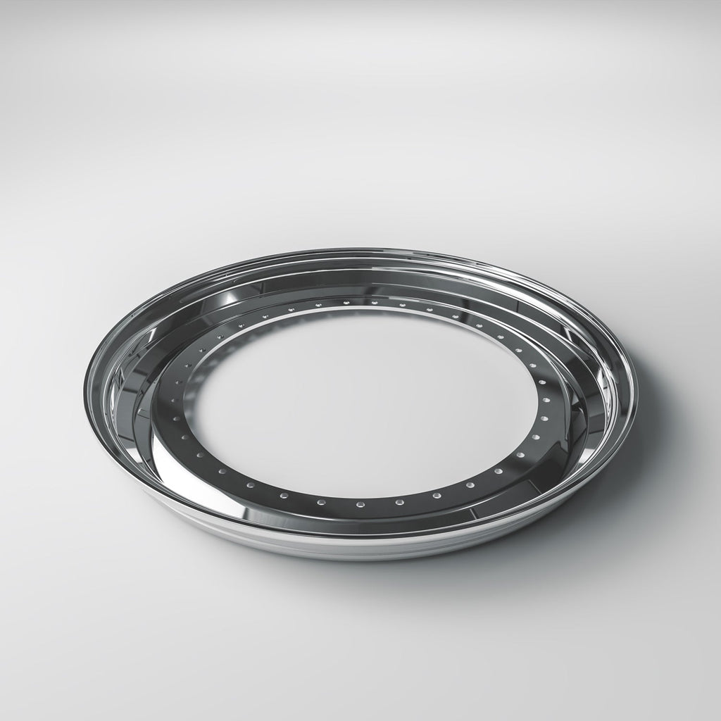 17-19” Diameter | M7 16 or 32 Bolt | Triple Step | Aluminium | Mirror Polished Finish | Pre-Drilled Valve Hole* | Suitable for two piece to three piece conversions** | This lip will step up your 17” wheels to 19”.