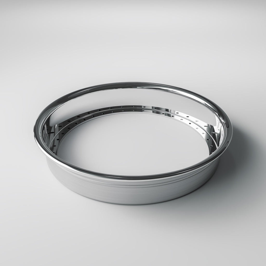 18” Diameter | M8 40 Bolt | Reverse (Flat) | Aluminium | Mirror Polished Finish | Rolled Outer Edge | Suitable for your three piece split rim wheels* | Centre Bore: 15.915" (404.25mm)