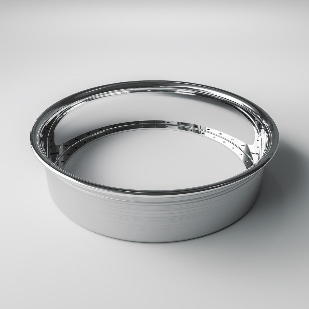 19” Diameter | M8 45 Bolt | Reverse (Flat) | Aluminium | Mirror Polished Finish | Rolled Outer Edge | Suitable for your three piece split rim wheels*